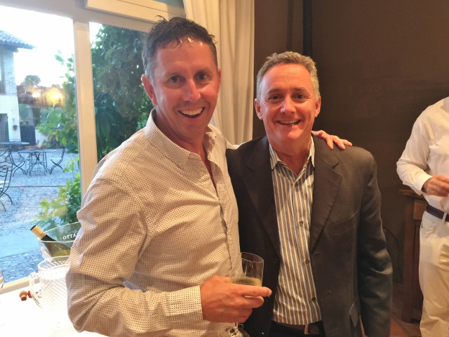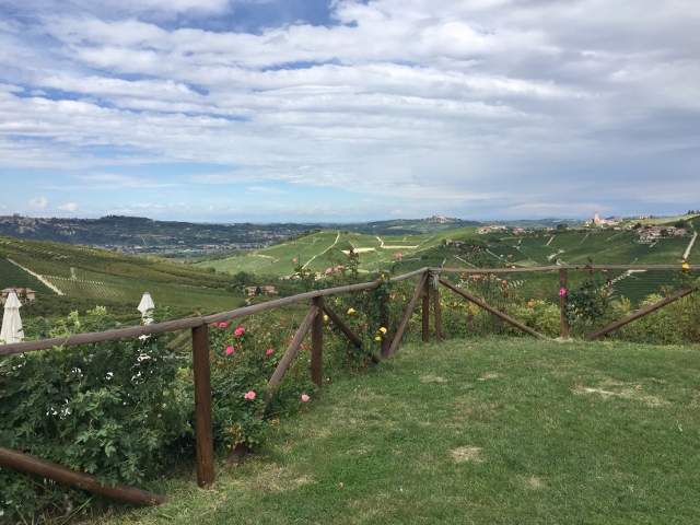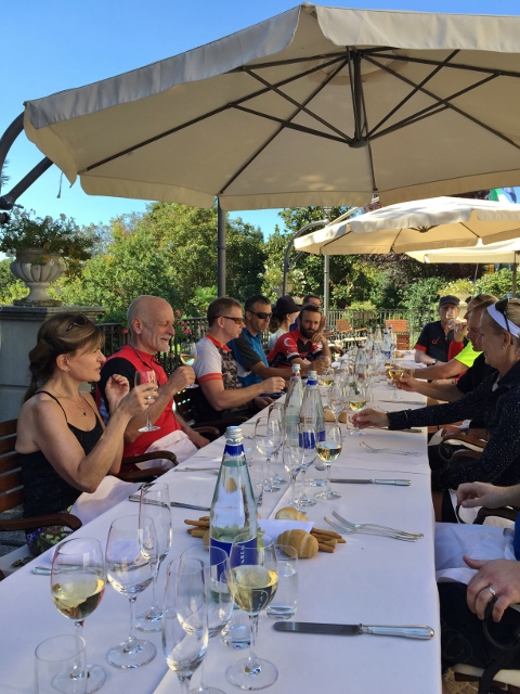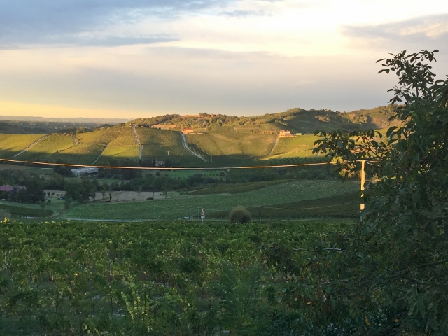 After lunch we boarded a bus, those who opted out of the century ride, to the hotel. Â All but, Dan, Carola and Jeremy snoozed our way to La Villa Hotel in Mombaruzzo. Â Upon arriving we were greeted with a glass of cold prosecco and our room keys. Â Our hotel was a renovated villa, that a British couple owned and operated. Â The views were amazing as far as your eyes could see and from our room window.