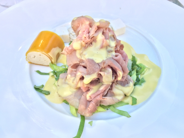 We began our lunch with the traditional Vitello Tonnato or Veal in Tuna Sauce. Â This version was a little more upscale than the traditional version with a bite of roasted yellow pepper, skinned and stuffed with pureed tuna.