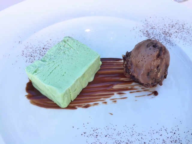 For dessert, Mint Semifreddo with a scoop of Whipped Chocolate was refreshingly nice. Â Then, back on our bikes to Villa Tiboldi in Canale, Italy for two nights.