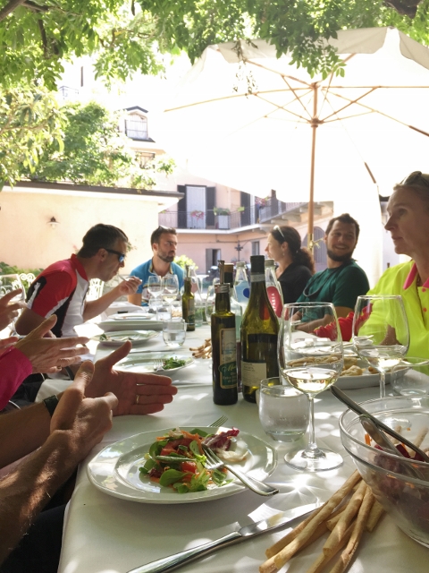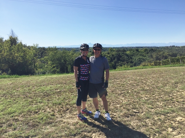 The biking group met in the hotel bar the night before to introduce ourselves to each other and have our first cocktail together. Â In the morning, we took a van ride seventy minutes out into the Piedmont wine region and had a Marocchino, espresso with a little milk and a dusting of cocoa powder, before we headed out for a day of biking in the gently (hmm?) rolling hills of Monferrato.
