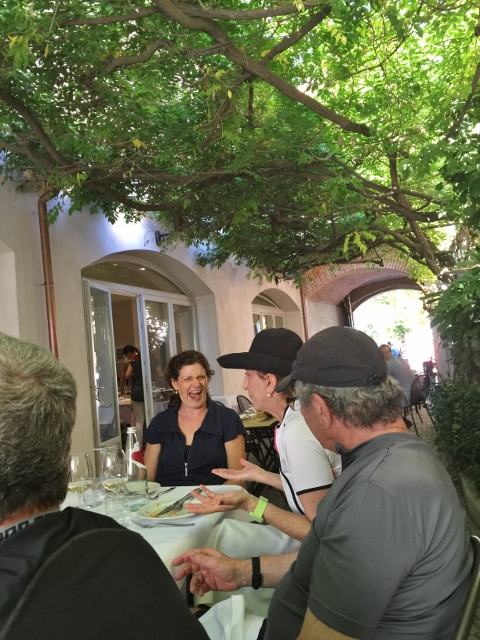 After our tasting, we headed to lunch at Ristorante Battaglino in Bra. Â Yes, I know we are already full, but we are in Italy and we are not missing lunch! Â We sat outside in the courtyard under a canopy of foliage and talked and ate and ate. Â I love this pic of Marya!
