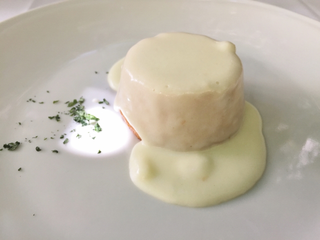 Our first course was a warm savory Pumpkin Custard with Cheese Sauce. Â The texture of the custard was light and airy, the perfect fall comfort food.