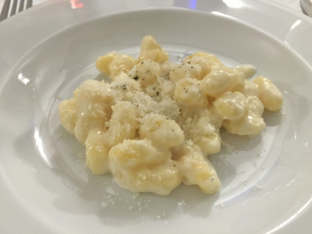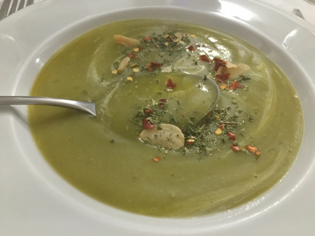 Our dinner was very rustic with Zucchini Soup, sprinkled with chili flake, fried garlic and dried herbs and Gnocchi with Gorgonzola Cream. Â Both of these dishes were the highlight of the meal.