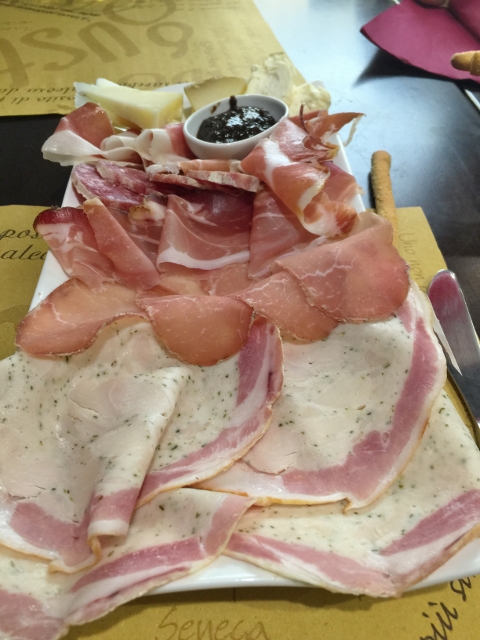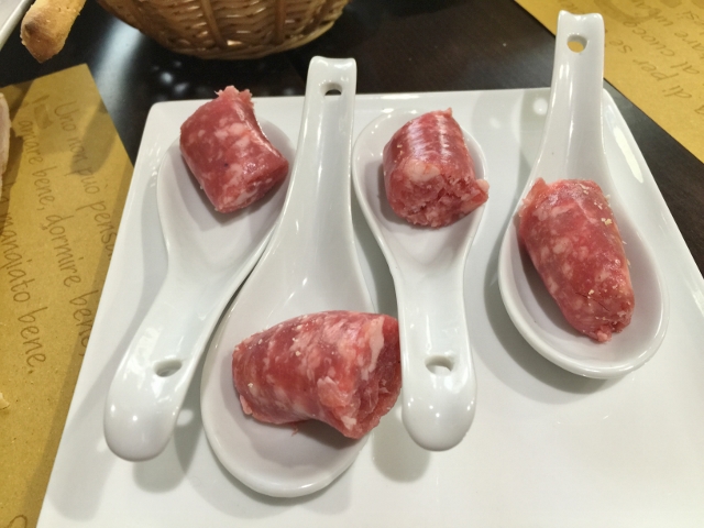 The owners of the wine bar gave us a sample of the local Piemontese raw sausage along with our wines too.