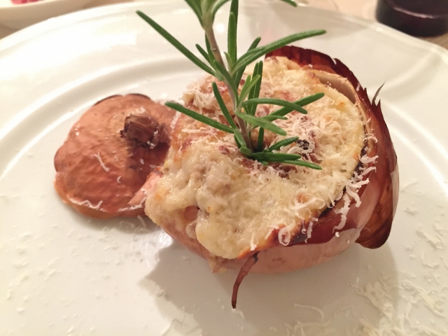 For appetizers, we started with the “Bloomin’ Onion,” as I called it, or Roasted Onion filled with local Melted Cheeses.