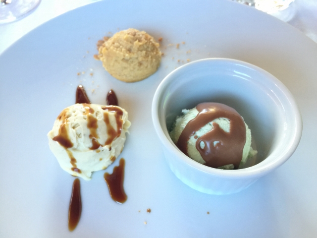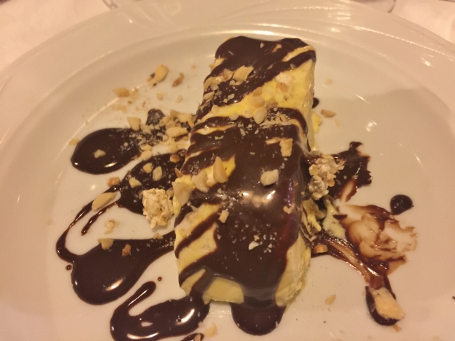 The dessert was nice too – Creamy Semi-Freddo with Chocolate Sauce and Ground Nuts.