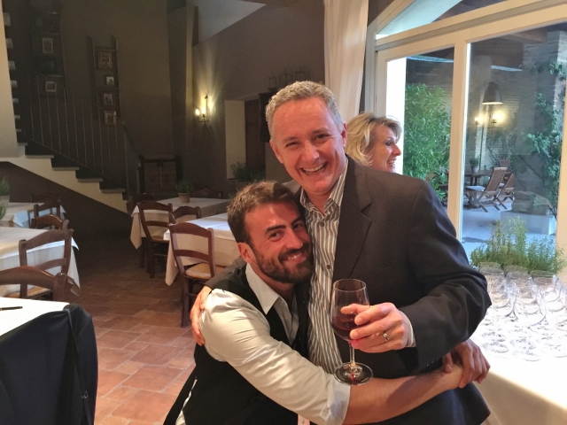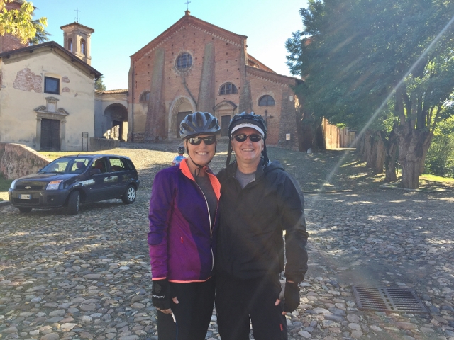 Jacopo, Dave and I stopped on our ride back, in the town of Mombaruzzo, home to the Amaretti Cookie. I purchased a few bags to take back along with some hazelnut and chocolate tortes for the holidays. Yum! Another stop along the route with the entire group, for our last glass of prosecco and a group picture.