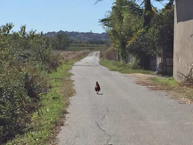 On our ride back, we took our time riding through the scenic villages and roads and came across a rooster. Â So naturally there was a joke here: Â “Why did the rooster cross the road?” Â “Because the chicken wasn’t available??”