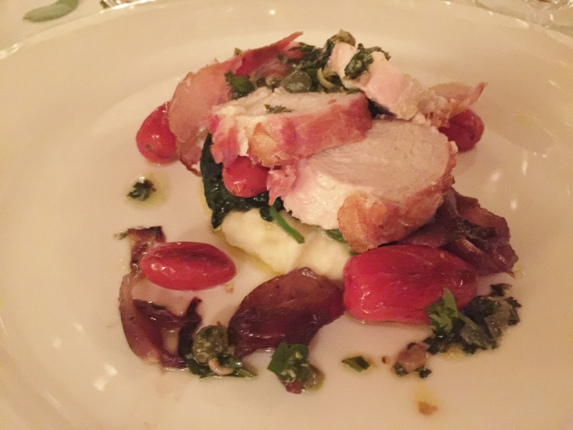 The Roasted Porcini Mushroom wrapped in Bacon and the Rabbit Salad with fresh olives, tomatoes and veggies were perfect dishes to begin our meal.