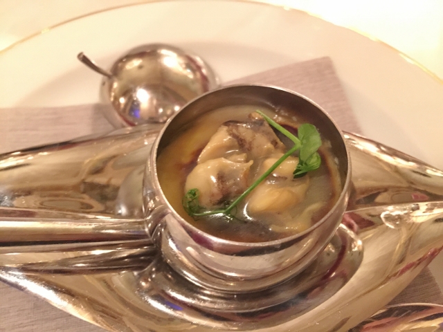 The Amuse Bouche was probably the best “Old School” dish on the table, Warm Custard with Snails. Â I loved the silver dish.