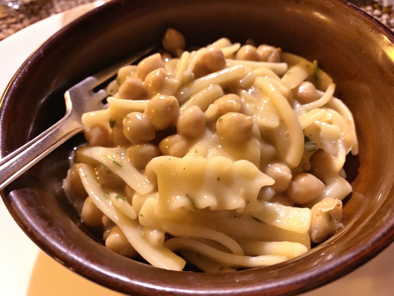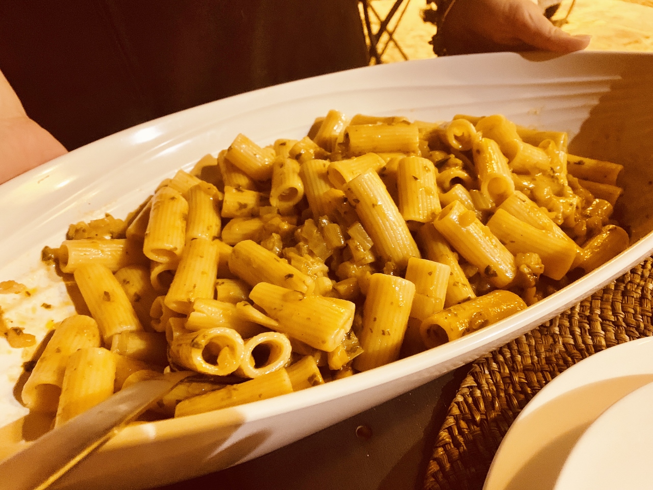 The food was very rustic, warm and comforting, just like I imagined it would be on an olive farm.  The first evening they prepared Rigatoni with Caramelized Onions, Chicken with Peppers & Potatoes and a Vanilla Gelato with Chocolate Sauce.  All three plates were true Italian comfort food and my pictures look a little yellow because there was a yellow light shining down on our table from the wall of the estate.