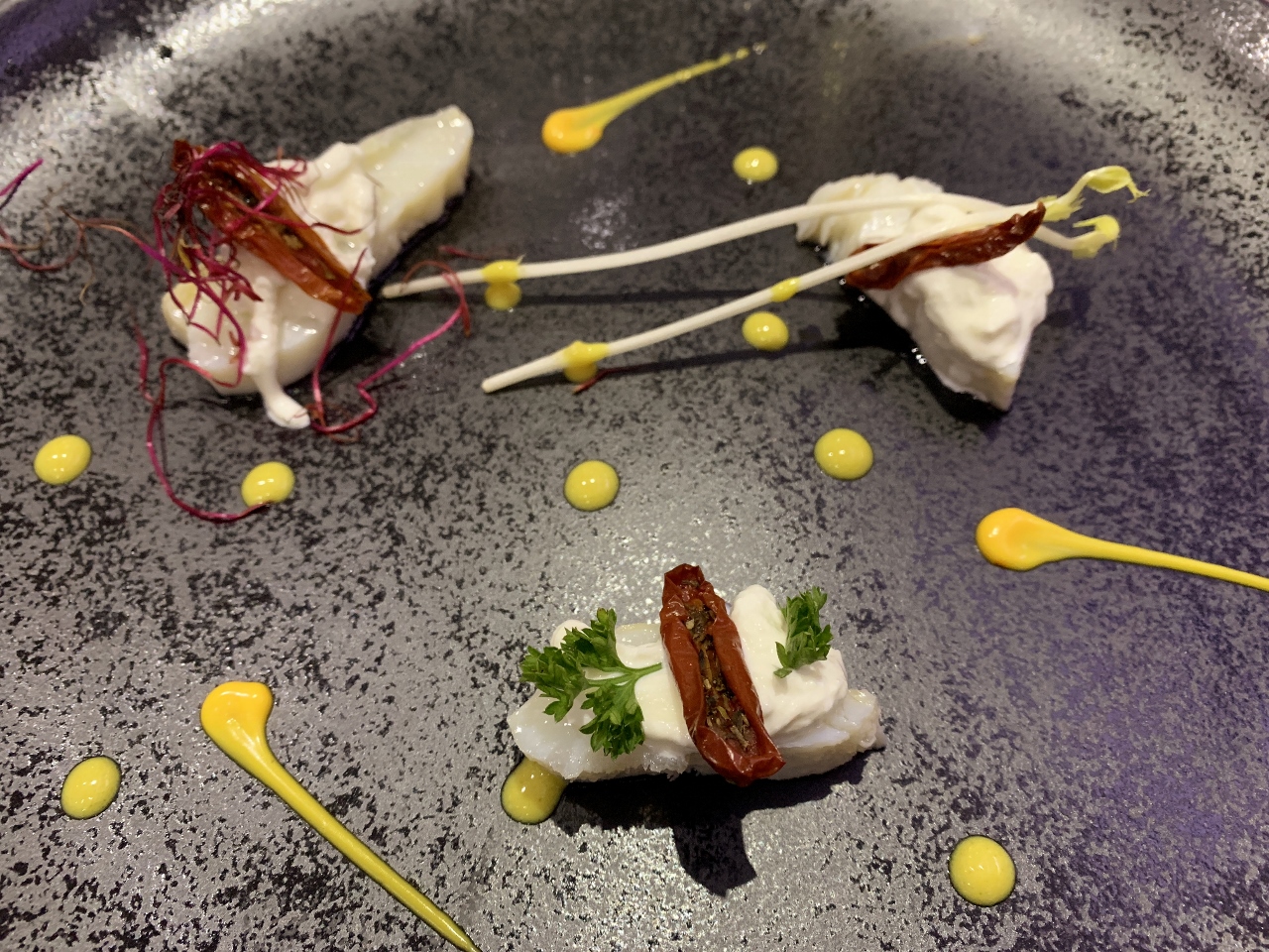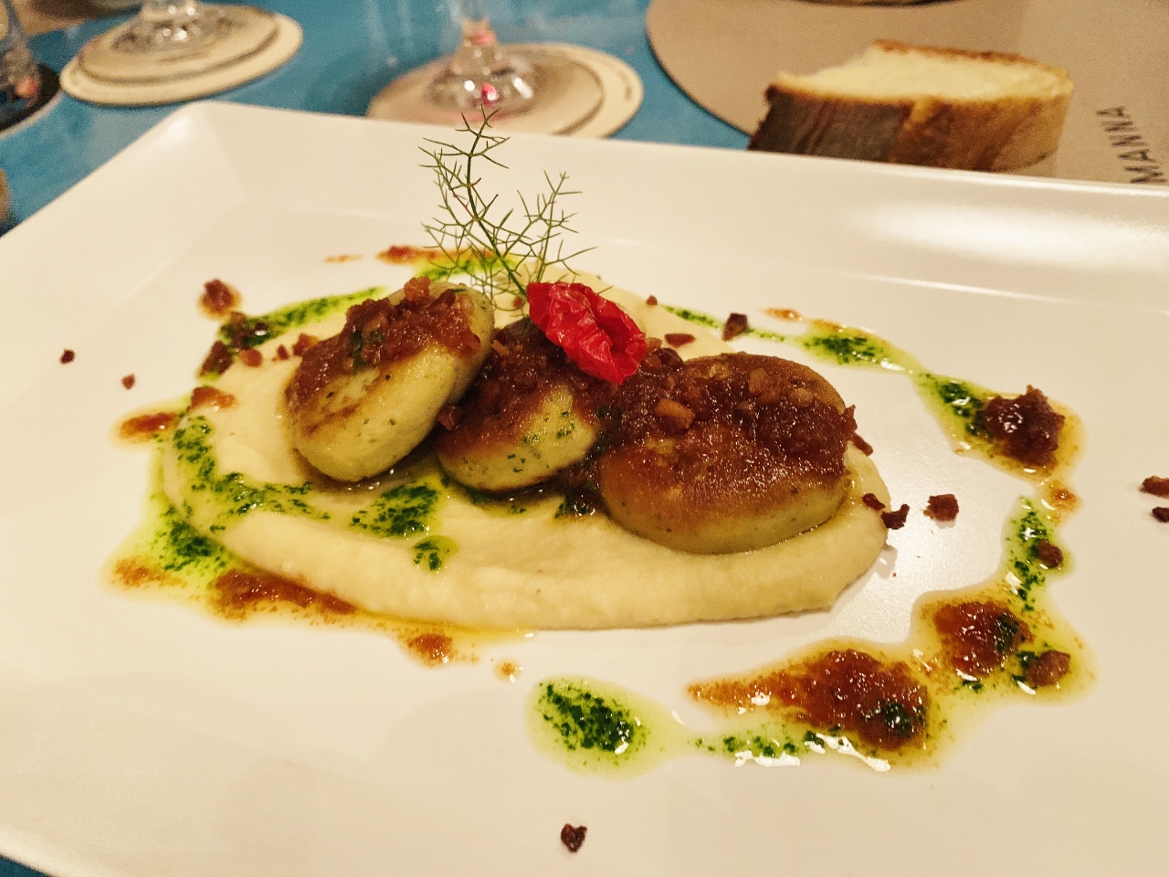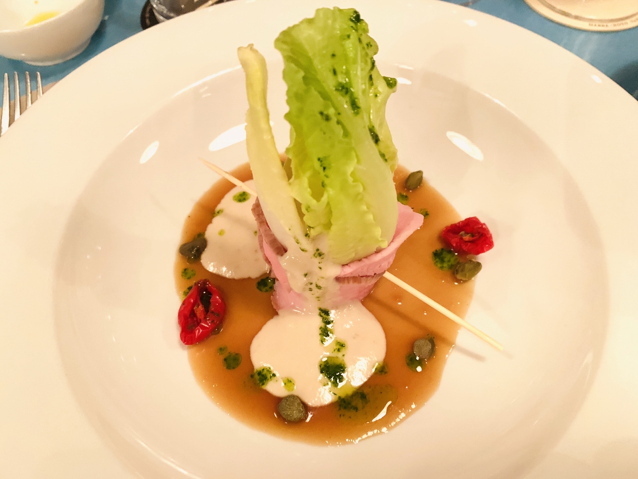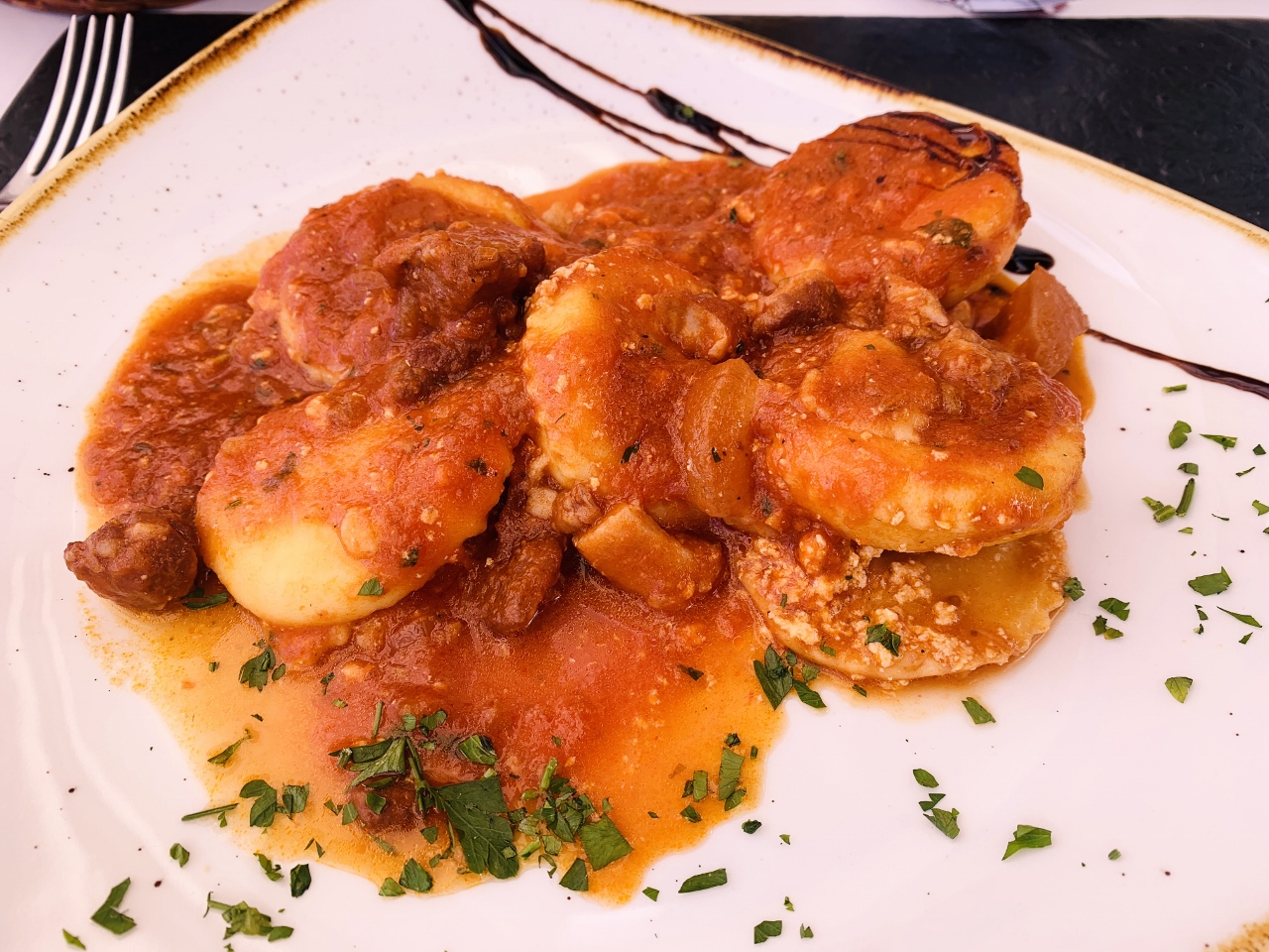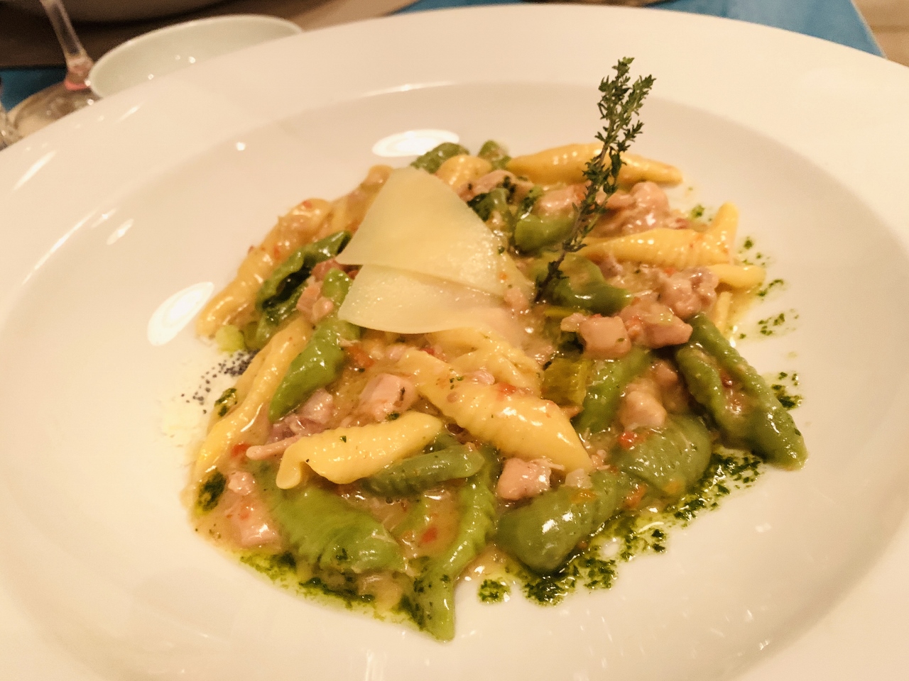 The Sliced Veal Lettuce Bouquet sitting in a Dashi Broth with Tuna Mayonnaise brought me back to my travels in Piedmonte two years prior, but with a lighter and brighter taste.  The Semolina Gnocchi in a White Rabbit Ragu was beautifully cooked – a creamy, succulent bowl of perfection.  One of our best dinners in Sicily.