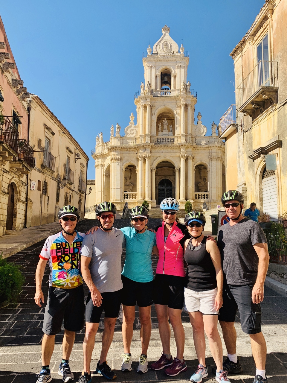 In the morning our bike tour began in Palazzolo Acreide, a 45-minute drive from Noto.  Guiseppe the bike store owner/driver was kind and cheerful and drove behind us in his van if we needed his assistance in any way.  We really enjoyed his personality and encouragement on those bigger climbs.