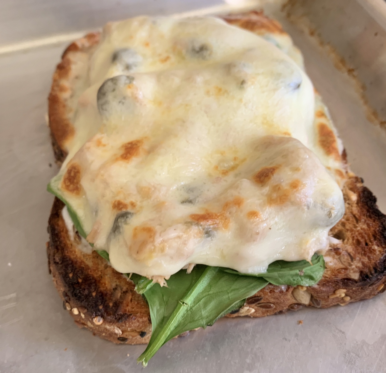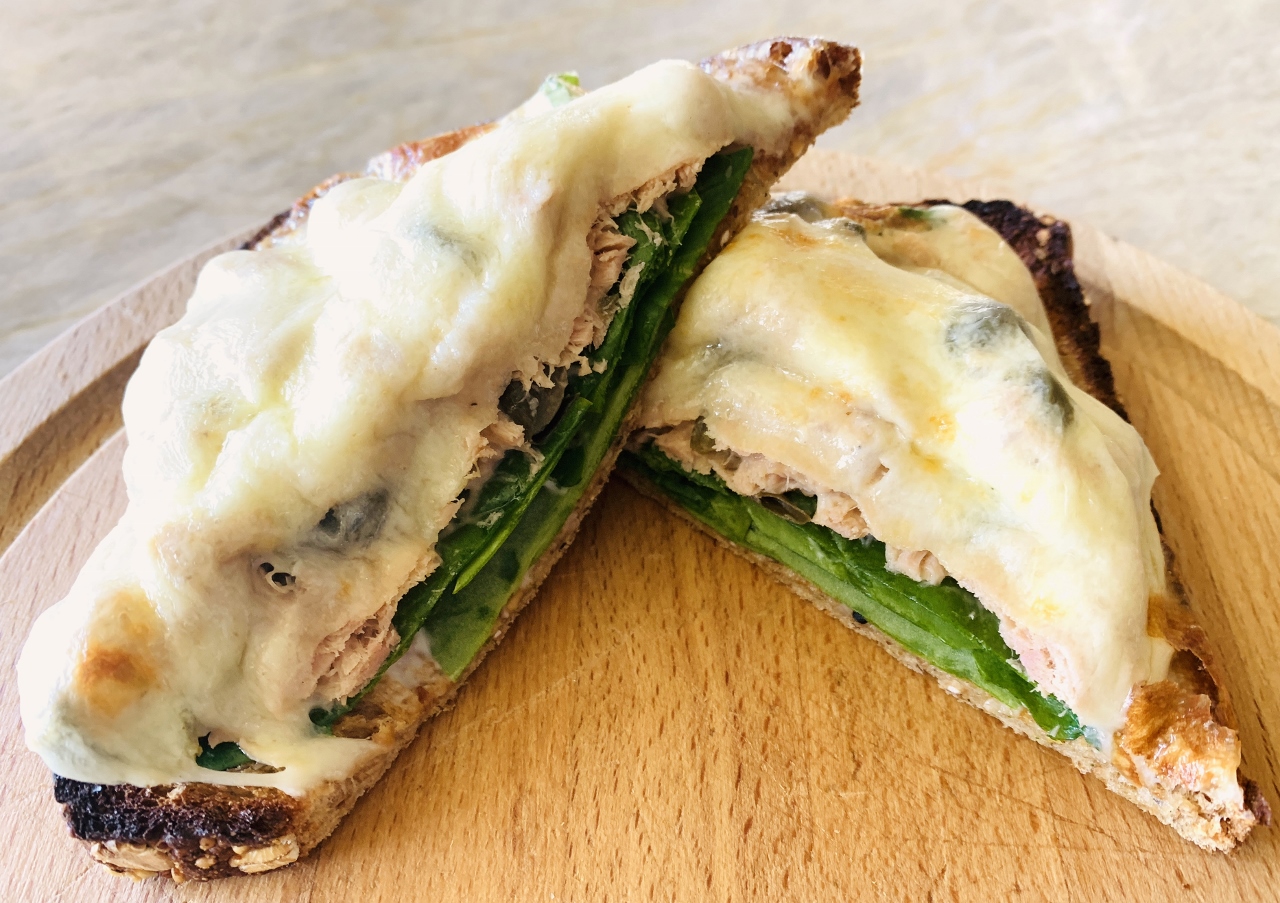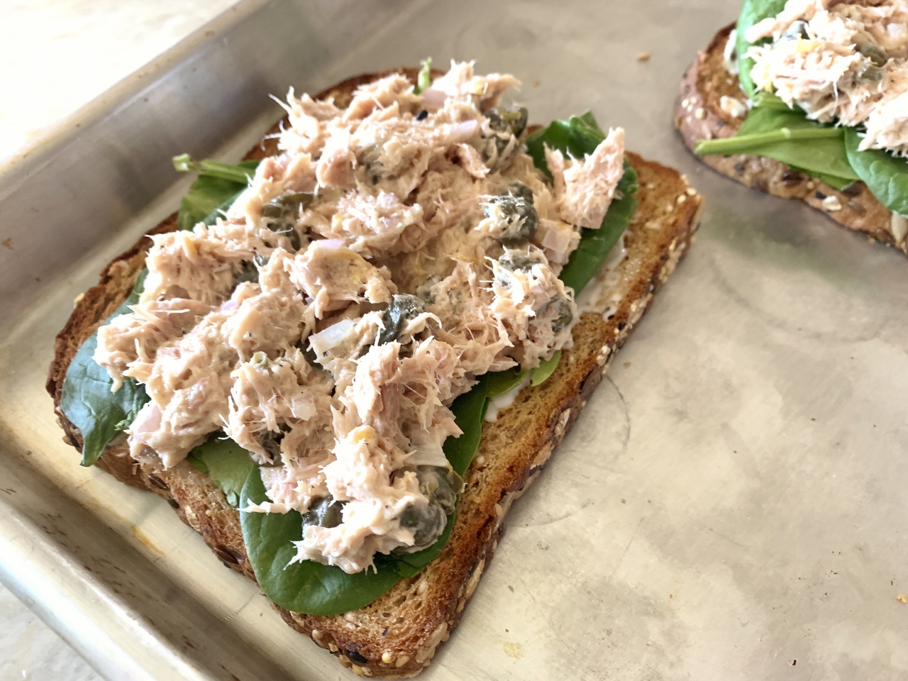 Tuna whether oil or water packed is always available in most people’s pantries and can be transformed into all sorts of wonderful things, especially a hot sandwich.   I buy oil packed tuna because who wants to eat waterlogged fish?  Not me.  So, any variety of tuna, preferably not albacore because it has shown to have a bit of mercury, but if you don’t eat tuna everyday, I don’t think it matters much.