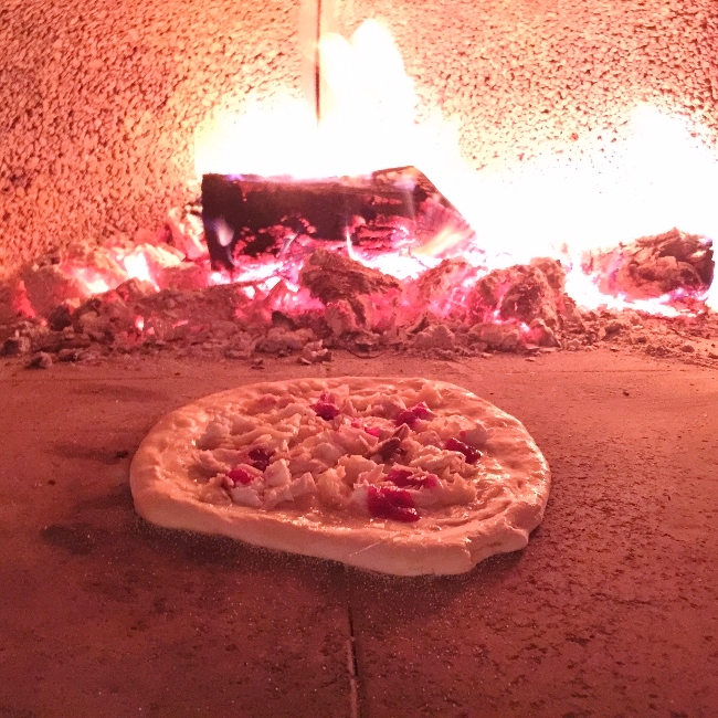 2. Dollop cranberry sauce over top and sprinkle with Parmesan cheese. Bake in oven for 10-12 minutes or until edges are dark golden brown. I have a wood burning oven, so I cook mine a little differently.