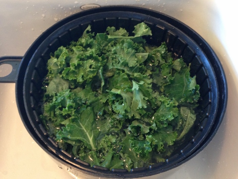 1. Preheat your oven to 300 degrees. Remove the twist tie from your kale.