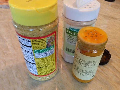 5. Take your seasonings and sprinkle about a half a teaspoon of each over the leaves or about two large shakes.