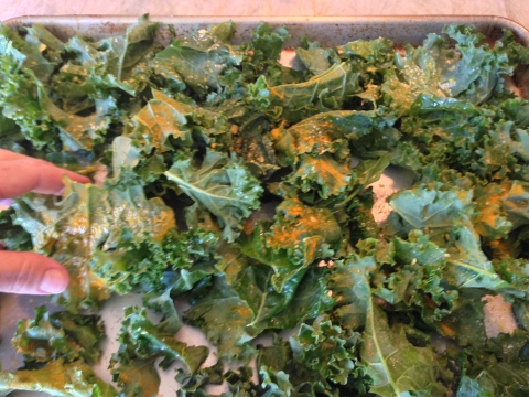 This recipe is for my sister – she just loves chips. For New Years she gave up chips, so far, and I thought I would create something for her that had nice flavor, a slight crunch and a bit healthier. I know many of us are a little burnt out on kale, but this recipe is terrific.