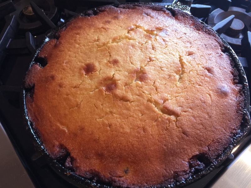 4.  Pour batter over cherries and spread out evenly.  Bake for 35-45 minutes, or until edges are lightly bubbly and batter is firm to touch.  Remove and let cool for 10 minutes.  Loosen cake around perimeter and invert onto a large cake platter.  Let cool for 1 hour before slicing, serve with a dollop of whipped cream, if desired.  Enjoy!