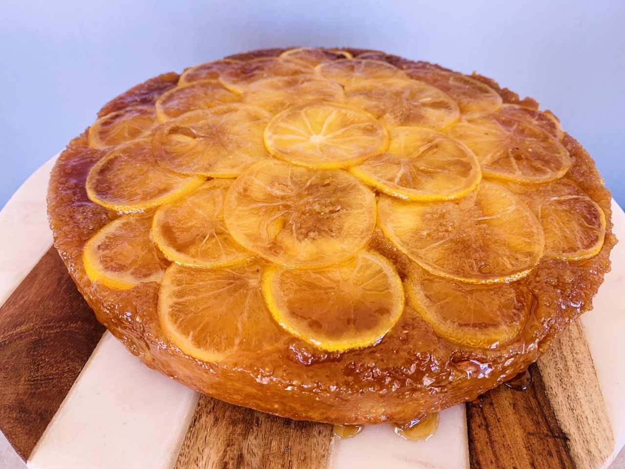 Slicing lemons wafer thin is the first step to a successful lemon dessert, especially in this upside down cake recipe. The thin slices of lemon rest in a pool of dark brown sugar and butter before baking, and a batter of polenta (fine cornmeal) and semolina (super fine cornmeal) is combined with a few ingredients to create a moist batter that tops the lemons. After inverting the cake out of the pan the sugar-glazed lemons rest on top of a corn-crumb pedestal like a subtle volcano before it erupts.