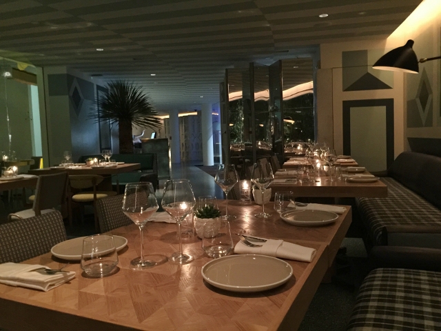 The restaurant is chic in nature with clean finishings throughout. The outside seating is around the hotel pool with trendy twenty-somethings looking for a fun, but tasty night out. The bar is equipped with liquor to impress the most finicky of palates and a nice wine list to match.
