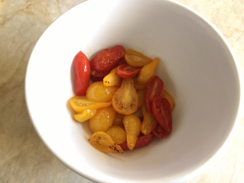Cherry tomatoes are a must during the winter months because regular slicing tomatoes do not have much flavor.  Cooking cherry tomatoes softens them and brings out their natural sugars.  I like to toss them in a pan for a couple of minutes in a little butter, or bacon fat because it’s a quick way to prepare them.