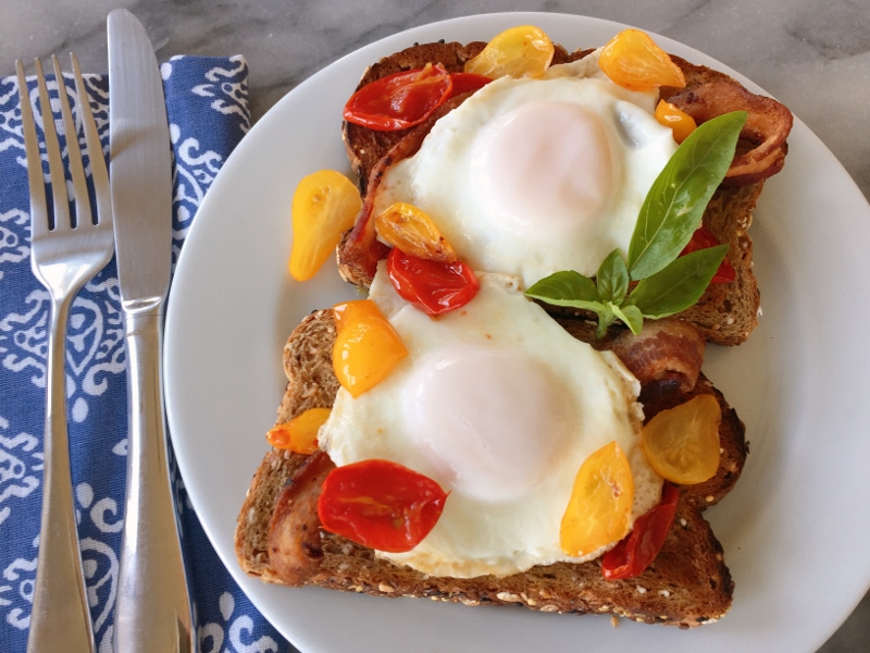 Warm Cherry Tomato, Bacon & Egg Toasts – Recipe!