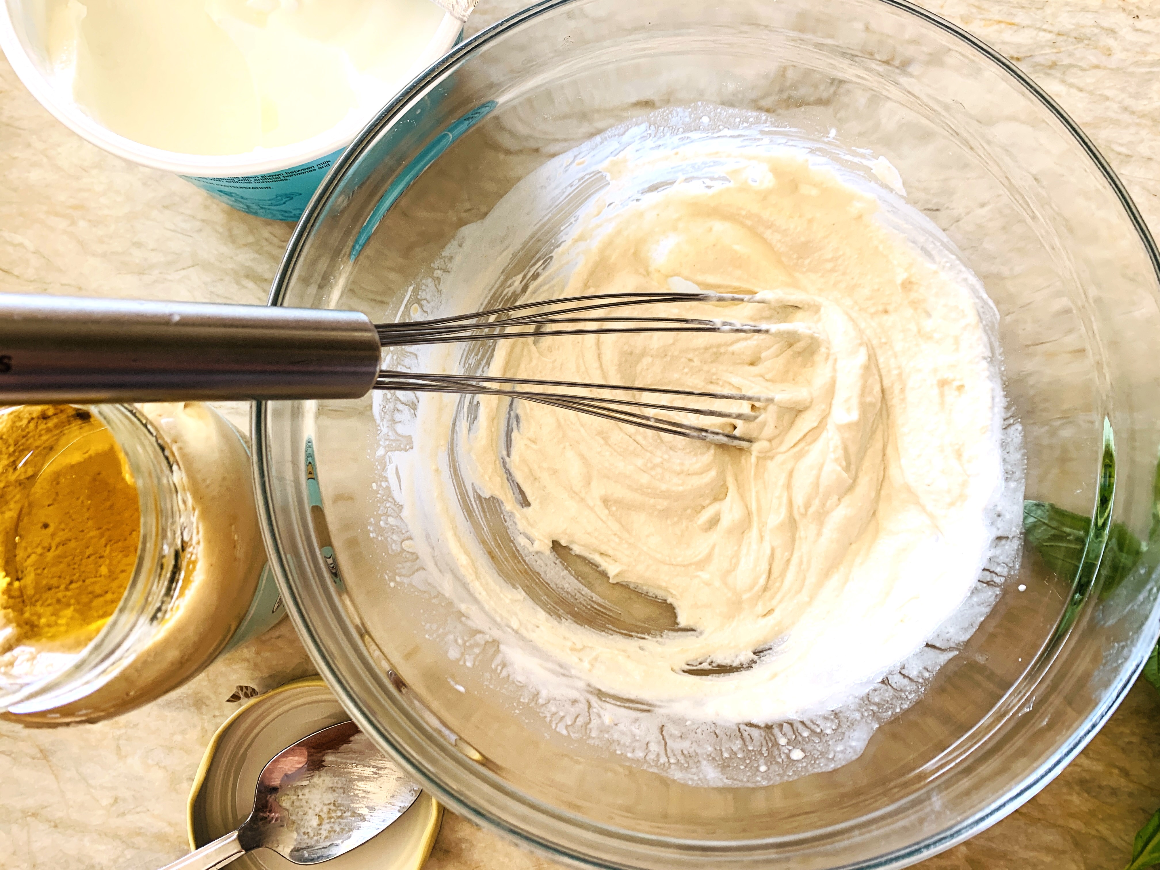 - In a large bowl, add yogurt, tahini, honey and salt, whisk until smooth.