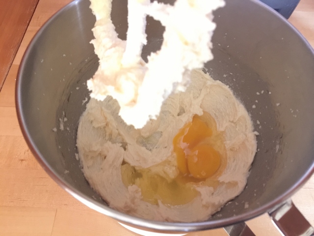 1. Preheat the oven to 375.  Grease a 12-cup muffin pan, set aside.  In a stand mixer cream together the butter and sugar for 3 minutes, scrap down the sides of bowl.  Add the vanilla extract and eggs and beat on high for 2 minutes.