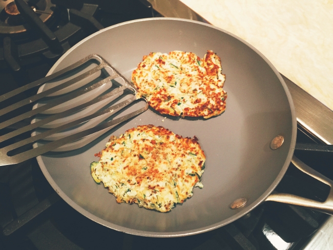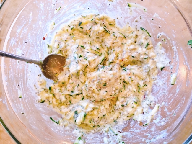 1. In a large bowl, combine shredded zucchini, egg, ricotta, chia seeds, basil, red pepper flakes, oregano, salt and pepper. Stir to combine.